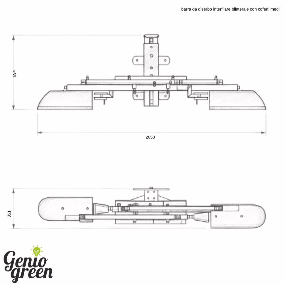 La barra da diserbo interfilare bilaterale   è dotata di cofani medi e predisposizione per la protezione antideriva (non inclusa). Inoltre, dispone di un sollevatore idraulico che consente di regolare l’altezza con una corsa di 30 cm. Questa barra è estremamente versatile grazie all’azione combinata dei terminali più lunghi e all’estensione idraulica di due cilindri. Grazie a queste caratteristiche, è possibile ottenere una larghezza di lavoro che varia da un minimo di 2050 mm a un massimo di 5650 mm.